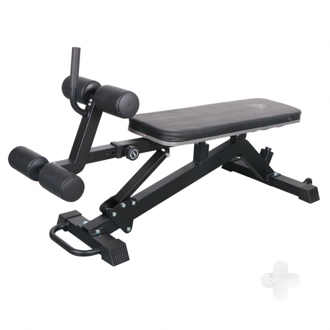 Скамья регулируется по углу наклона в широком диапазоне, до 24°, включая отрицательный. Всего 6 уровней регулировки.