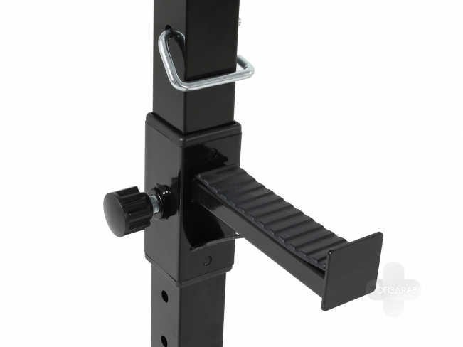 - Регулировка страховочных крюков под штангу по высоте на 6 уровнях;